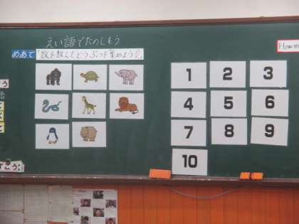12月7日(木)2年2組の英語活動は,動物の名前や1〜10までの数の学習をしました。
