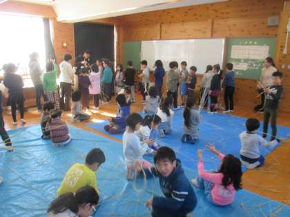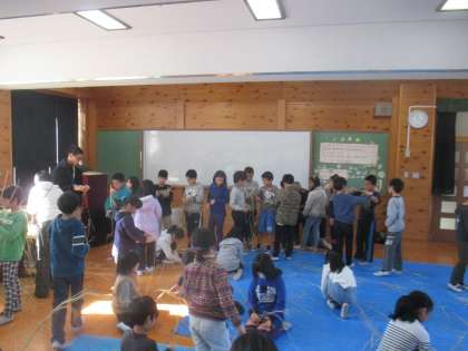 地域のボランティアの方々の指導により,わらづくりをしました。