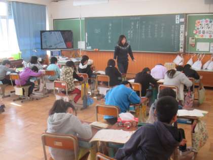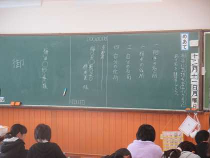 12月11日(月)4年の国語は,年賀状の書き方の学習をしました。
