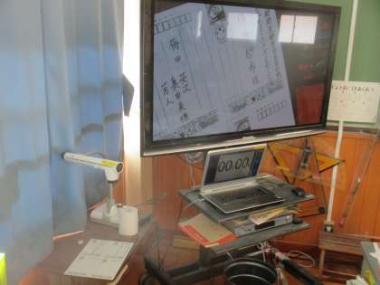 プリントや小さな実物も,テレビに大写し出来るので,とても便利です。