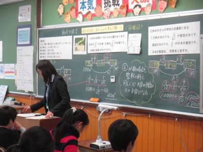 全校の教員が,参観する中で,「割合を使って」の学習をしました。