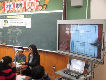 書画カメラで,面積図をテレビに映しながら,説明をしたり,関係図で問題を解いたりしました。