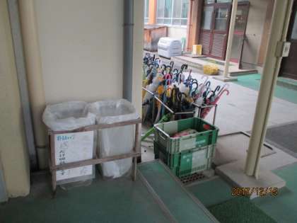 回収場所は,新館と給食室との間の渡廊下のところです。