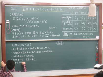 「塩が水に,かぎりな溶けるのかどうか」を調べました。