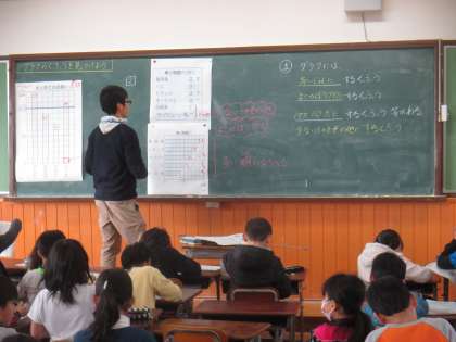 1月18日(木)3年は,合同算数をしました。「グラフ」について学習しました。