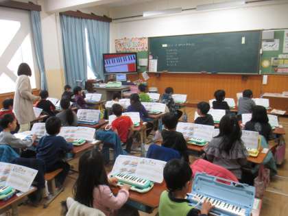 2月2日(金)1年1組の音楽は,鍵盤ハーモニカの練習をしました。