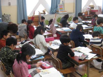 2月2日(金)1年2組の国語は,「たぬきの糸車」の学習をしました。