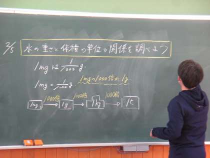 2月5日(月)6年1組の算数は,「水の体積と重さ」について学習しました。