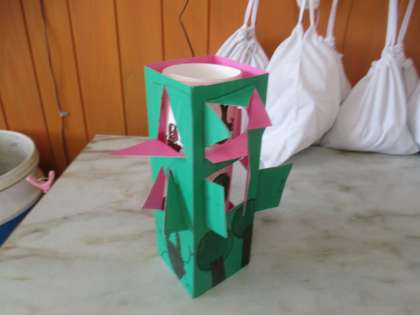 いろいろな形をカッターで切って,窓を作りました。