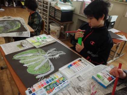 収穫した白菜を早速,絵をかきました。