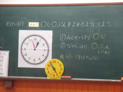 2月15日(木)1年1組の算数は,「時計」の学習をしました。