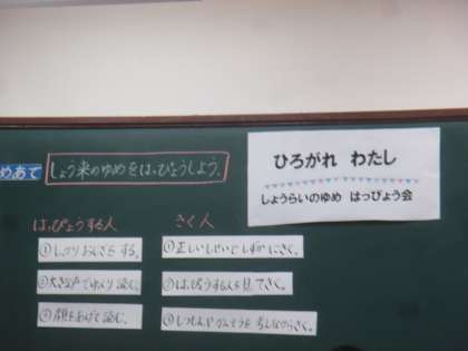 「ひろがれわたし」の学習で,「今の自分」になるまでを振り返り,将来の夢の作文を発表しました。