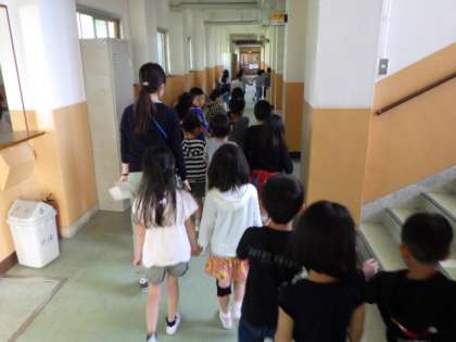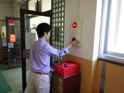 非常ベルが鳴っても,「誤報だろう。」とか,「大丈夫だろう。」と思ってしまうことが,とても危険だと言われます。非常ベルが鳴ったら,先ず逃げる,という行動を取るということが大切です。本校では,そういう態度を育てるための誤報訓練をしています。