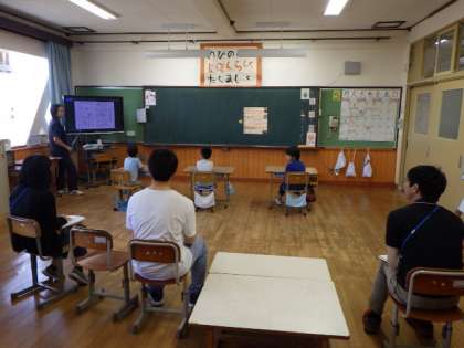 朝の会や算数の授業を校内の先生に見に来てもらいました。