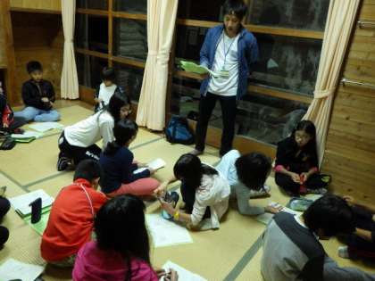 グループごとや係ごとに分かれて、一日を振り返りました。