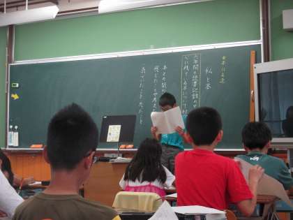 国語の学習では,6年間の読書記録から一番心に残っている本を紹介していきました。