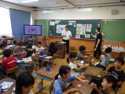 9月5日(水)4年の参観日の授業は,外国語活動で「What time is it?」の学習をしました。