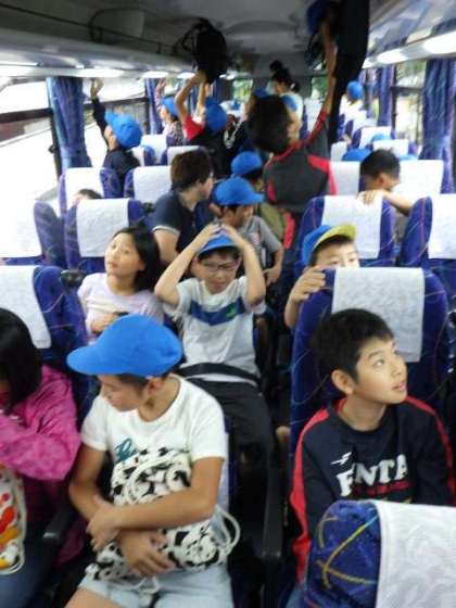 学校を出発した4年生は、仁和寺前からバスに乗り、みさきの家へと出発しました。