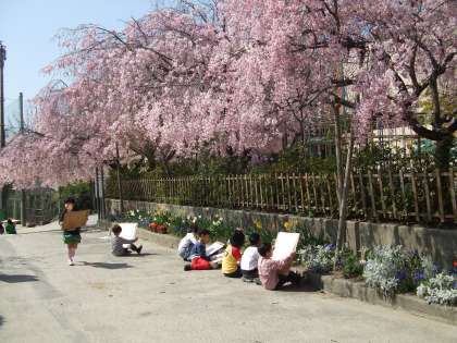 2年生は校庭のお花を一生懸命見ながら描いていました。