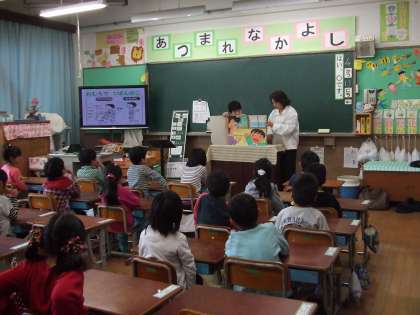 1年生は右京警察署の方や地域の方に教室に来てもらい,安全に気をつけて登下校できるようにと紙芝居を見せていただいたり,お話を聞かせていただいたりしました。安全には十分気をつけて歩いてください。
