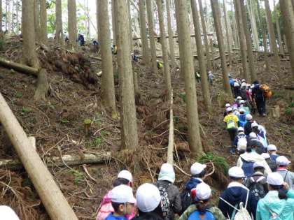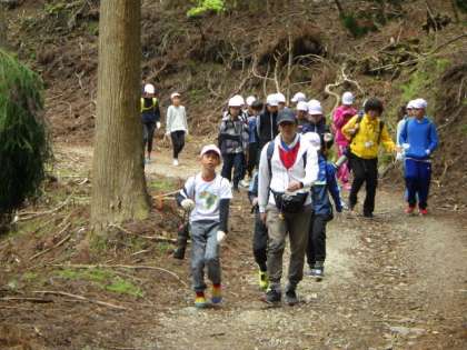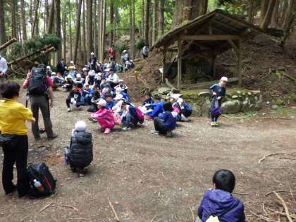 5月15日(水)5年花背山の家、天狗杉登山の途中休憩です。