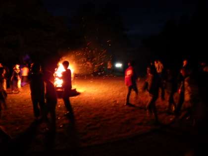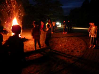 ゲームをしたり、歌を歌ったり、マイムマイムを踊ったり、楽しいキャンプファイヤーでした。