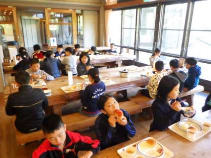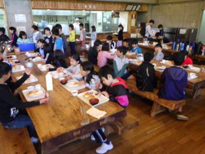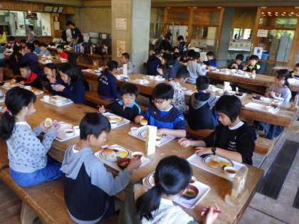 5月16日(木)5年花脊山の家、3日目の朝食をみんなおいしくいただいています。