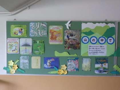 5月のテーマは,「山の中で」です。5年生が花背山の家の体験学習に行ったことともコラボしています。
