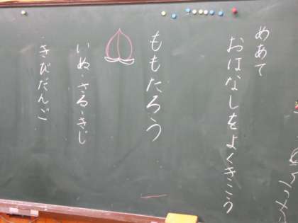 5月21日(火)さくらんぼ学級の国語では,「ももたろう」のお話のビデオを見て,登場人物やお話の流れを振り返りました。