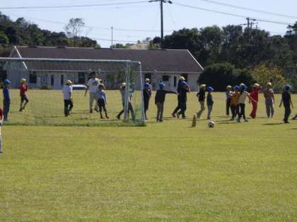 昼食の後、外遊びをしました。サッカー、鬼ごっこ、フライイングディスクゴルフなどなど、いろいろ青空のもと、楽しみました。