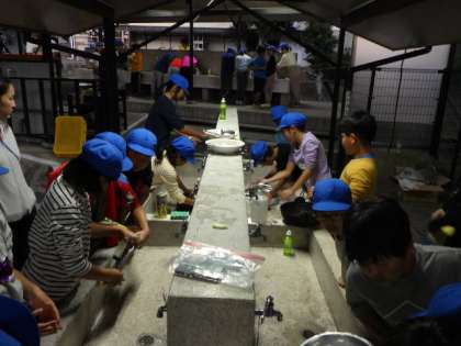 そのあと、お風呂に入って、星空の観察をしました。今日は、星空がとてもきれいで、土星と火星、夏の大三角、カシオペア座と北極星など、たくさんの星が見られました。しっかりとみて、色の違いを見つけている子もいました。流れ星を見つけた子やうっすらと天の川を見つけた子も、いました。