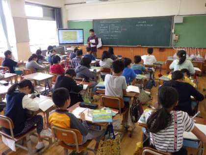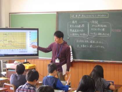 10月17日(木)5年1組の社会科は,5年2組の担任が,焼津漁港を例に「遠洋漁業」について学習しました。テレビにグラフを写しながら,時代の流れの中で,漁業の仕方の変遷も学びました。