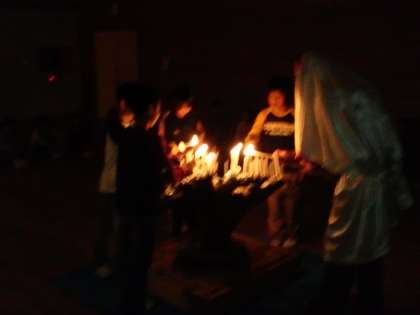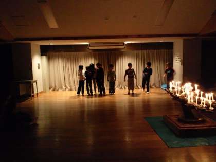 最後の夜。ろうそくの炎をかこんでのキャンドルファイヤー。