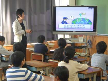 インストラクターの方にも来てもらって,インターネットへの不適切な書き込みのトラブル事例の動画教材をもとに,問題点とその影響を考え,インターネットを適切に利用する子とを学習しました。