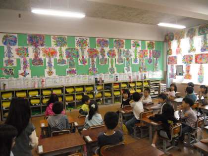「こんな はな さかせたい」かんしょうかいをしました。じぶんの すきなさくひんを えらんで,すきなりゆうを はっぴょうしあいました。