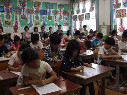 1年生は初めての日曜参観です。少し緊張しながらも一生懸命に学習しています。