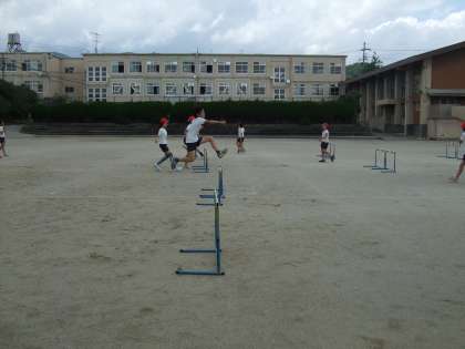 久々の運動場での体育です。ハードル走もだいぶリズミカルにまたぎ越す子どもが増えてきました。また,ともだちと競走する姿も見られます。