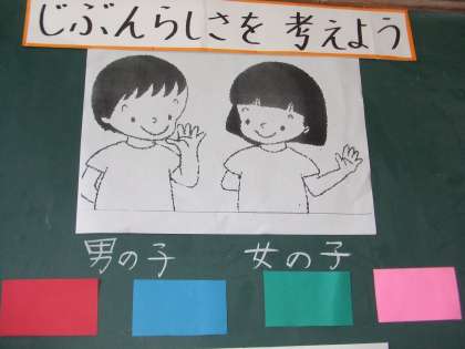 道徳の授業では,男の子と女の子に色をぬる学習でしたが、