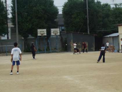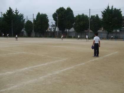 今日はソフトボール部の様子です。練習試合をしています。もっと声を掛け合いながらできればいいのですが………。