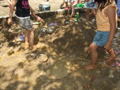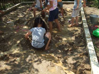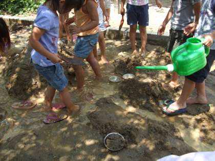 造形砂場で山や川を作りました。