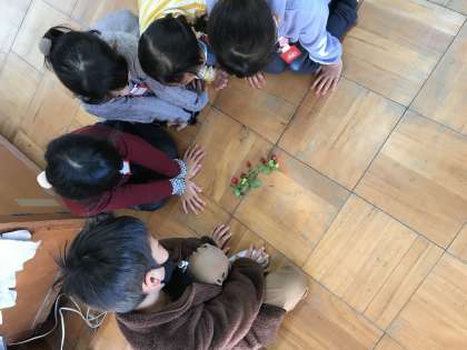 今日も何人か収穫ができました。赤いおいしい実ができています。