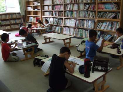この時間帯のまなび教室は2〜4年生が多く二つの部屋に分かれて学習しています。友だちと仲良く楽しく過ごします。