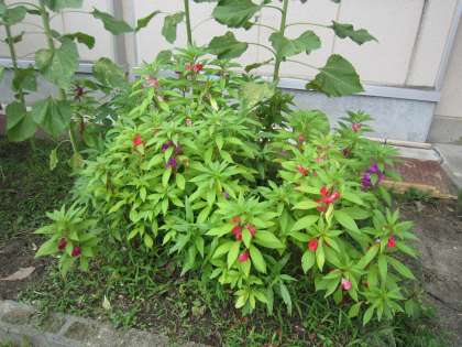 理科で観察している,ヒマワリとホウセンカが大きく育っています。