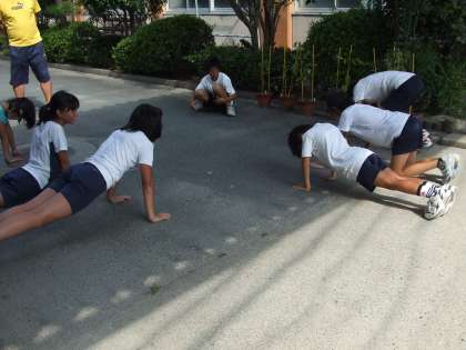 6年生は朝練をしています。暑くて苦しいですが頑張ってます。