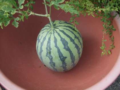 4年生のツルレイシはどんどん花が咲き,実がたくさん生っています。6年生のスイカもこんなところで大きく育っています。2年生のヒマワリは,1階の天井くらいの高さにまでなっています。