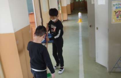 教室,廊下,靴箱を丁寧に掃除しました。友達と協力しながら一生懸命掃除気持ちを新たに来週から新年度の学習を始めることができそうです。