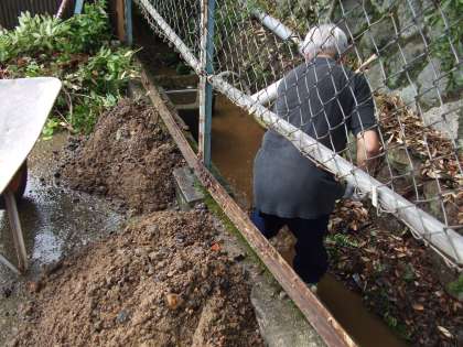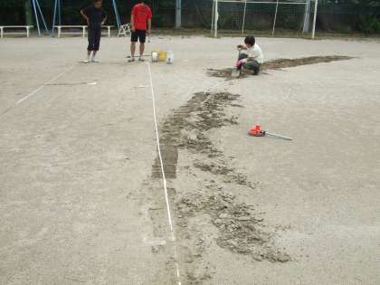 3日後の授業再開に向けて,少しでも教育環境を整えるために教職員みんなで汗を流しました。川の砂上げ,運動場のトラックのライン張り,図書室の大掃除をしました。