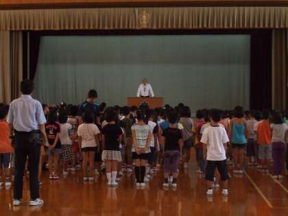 本日から授業が再開です。児童は夏休みの宿題や荷物をいっぱい持って元気に登校してきました。
