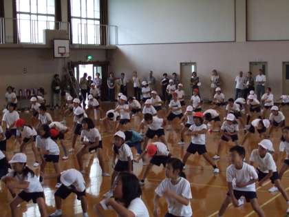体育館で運動会の踊りの練習です。