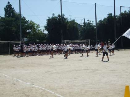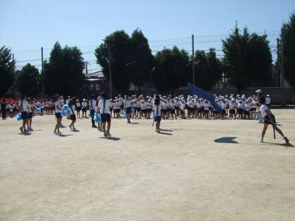 今日初めての全校練習で「白」「赤」「青」に分かれて,応援練習を行いました。もっと,もっと熱くなれ!